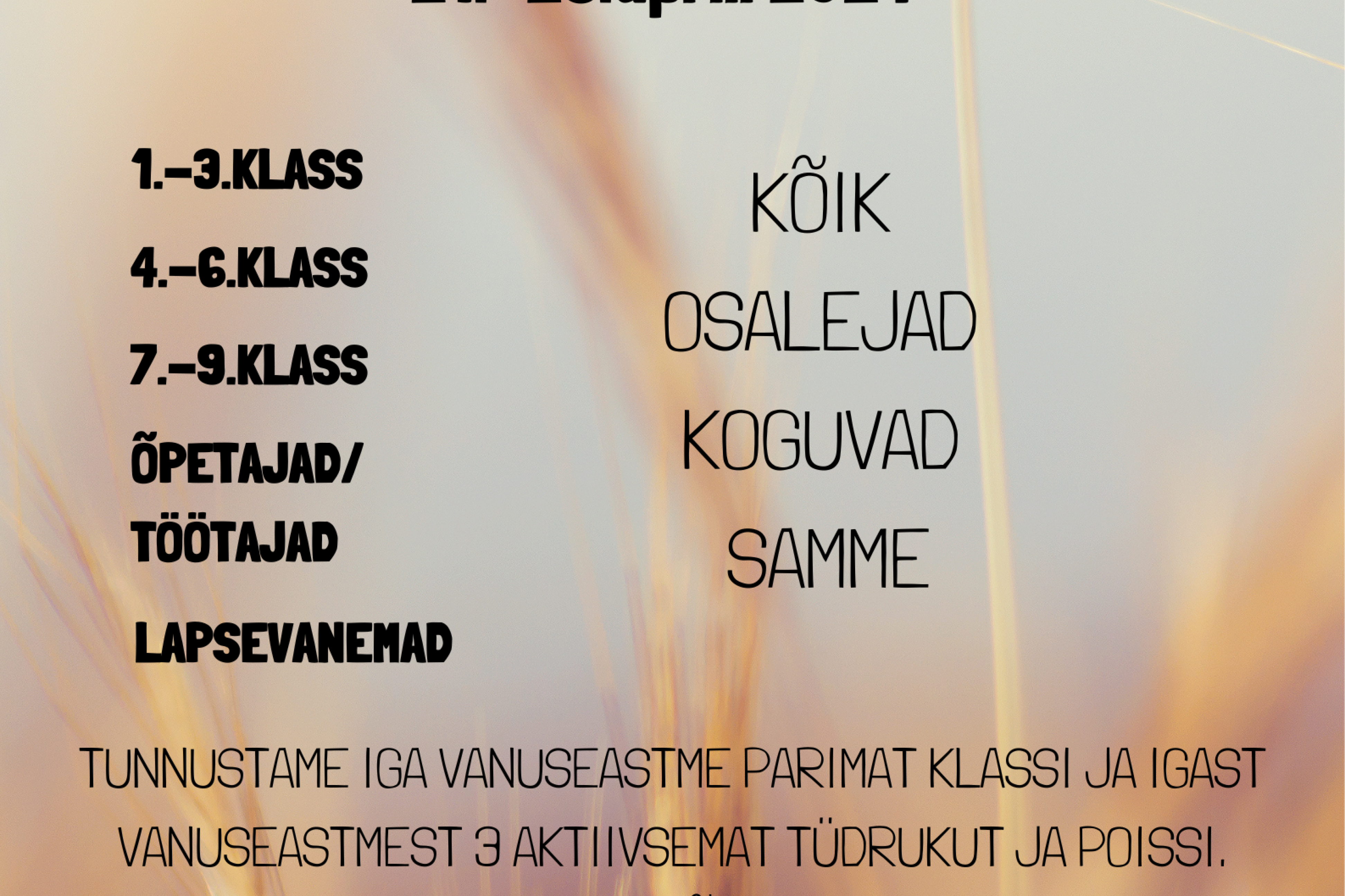 Osalema on oodatud kõik õpilased 1.-9.klassini ja õpetajad / töötajad.